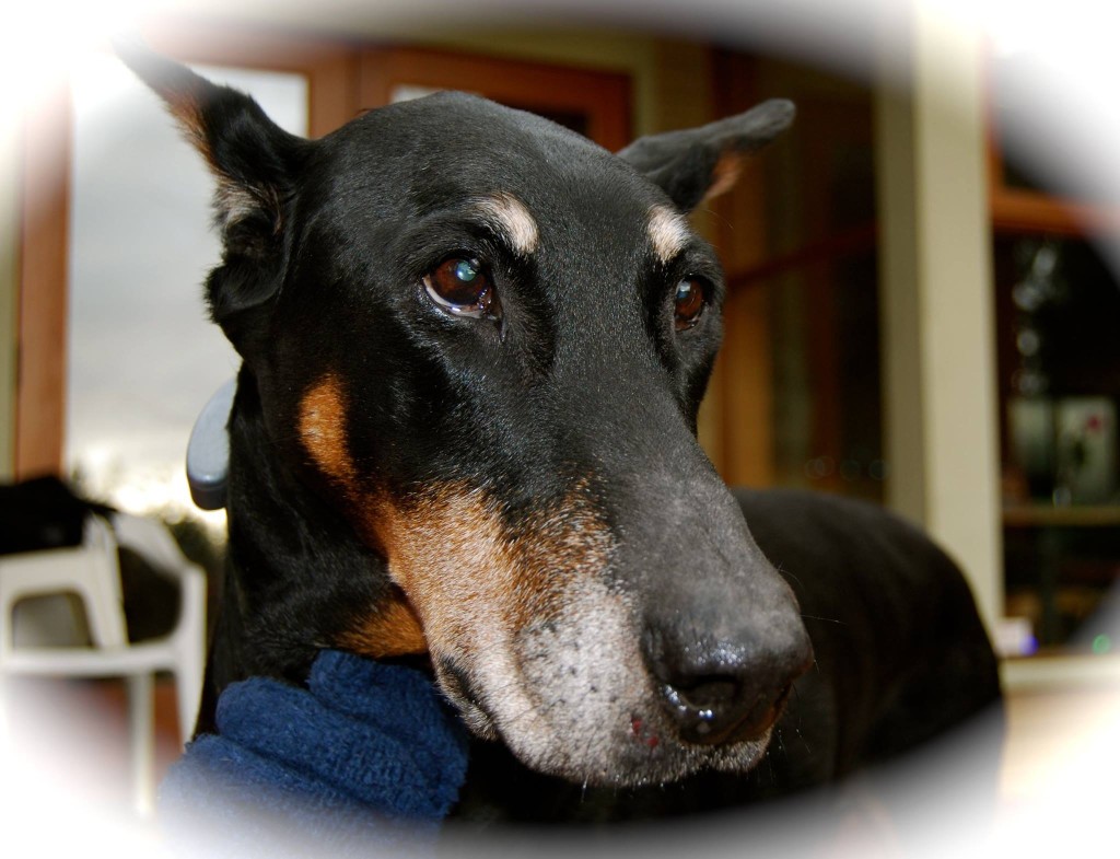 JACOB June 2000-November 2013 Some dogs are majestic and noble, some are fiery and comical; some dogs are willful and independent, some are eager to please and are close. My friend Jacob, was all of these. The last puppy of his litter to be adopted, he survived his father and most of his litter mates, being unaffected by the tragic cardiomyopathy of Dobermans that was prevalent in his heritage. Although I abhor cropping, the decision of the breeder to crop Jacob’s ears and tail did not prevent me from giving him a wonderful home. He and I shared many joys and challenges, and his presence to me was always unconditional. I miss him still.